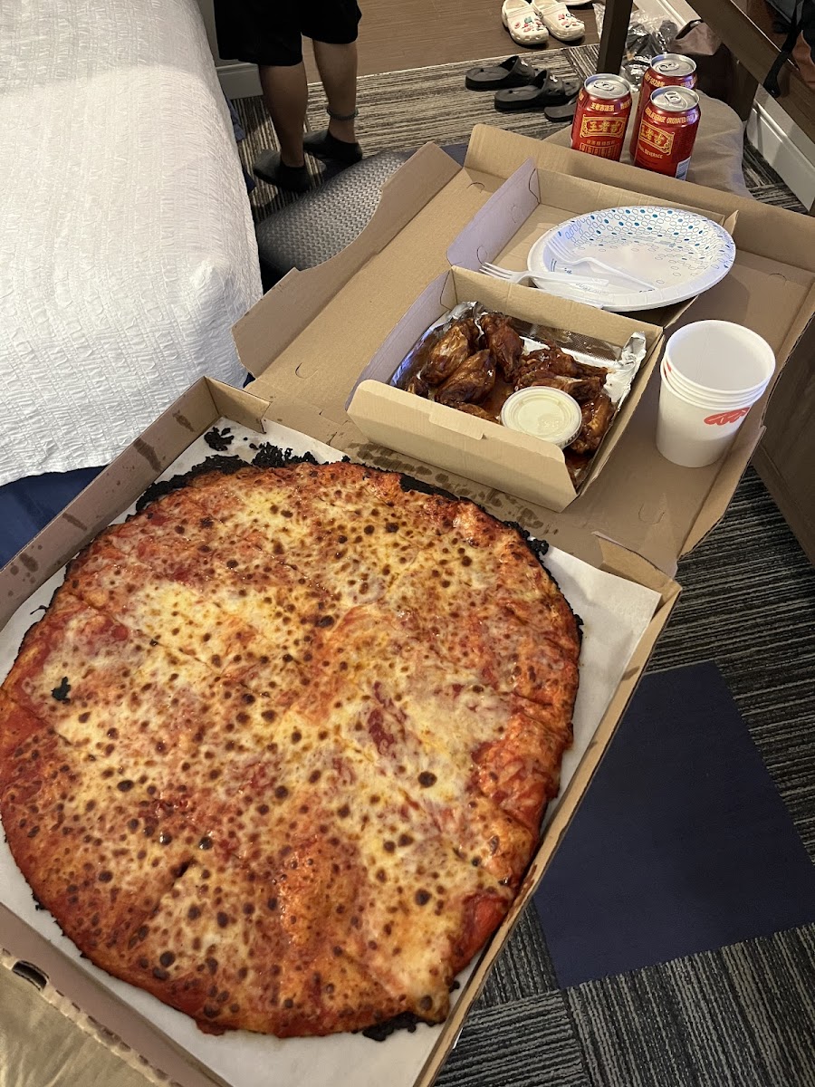 Ordered a special 20 wings, and large pizza. 51.00 give or take. Our wings were crispy, not very saucy. Still good. Pizza delicious, as expected. My gf from Rochester, has never had any thing other dog poopy for pizza. Its Rochester . Very happy with our dinner tonight.